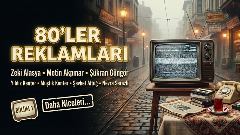 80’ler Türkiye’sinin o unutulmaz “reklam kuşağı” havasına geri dönüyoruz! 📺✨ Eski İstanbul görüntüleri, Siyah Beyaz televizyon hissi, kasetler, gazeteler, çay bardağı…